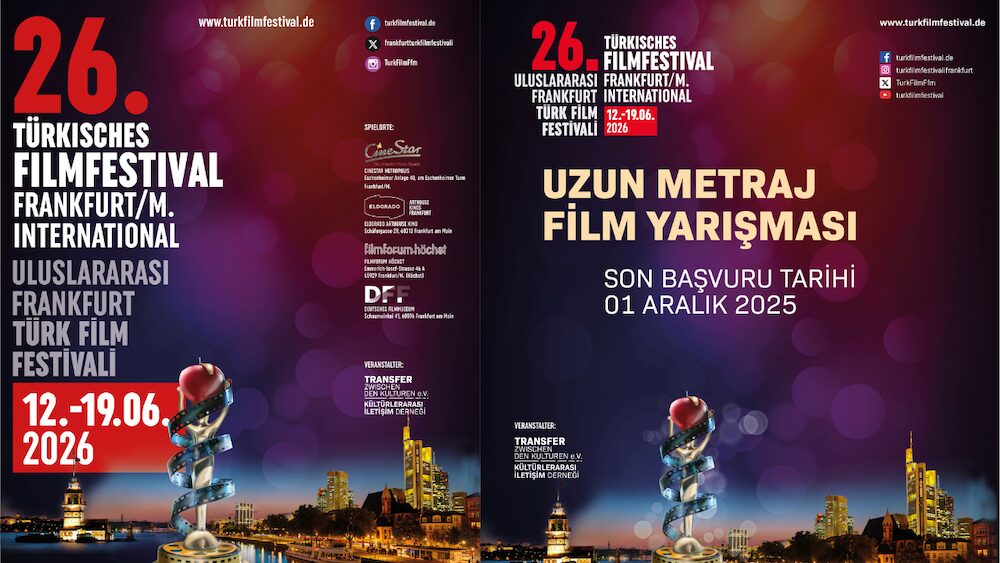 Avrupa’nın en köklü Türk sinema etkinliklerinden biri olan Uluslararası Frankfurt Türk Film Festivali, 12-19 Haziran 2026 tarihleri arasında 26. kez izleyicilerle buluşmaya hazırlanıyor. Festival, bu yıl da sinema sanatının evrensel dilini kültürler arası diyaloğun hizmetine sunmayı hedefliyor.