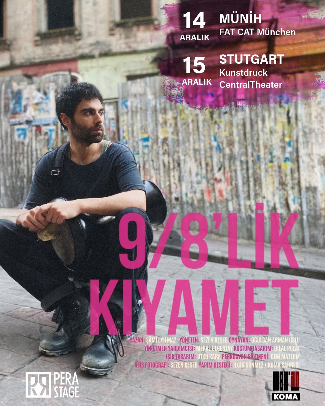 İklim krizinin eşiğinde çöken bir dünyanın, aşkı ve ihaneti aynı çatı altında buluşturan çarpıcı oyun “9/8’lik Kıyamet”, aralık ayında Almanya’da iki ayrı şehirde sahnelenecek. Afife Jale ödüllü bu etkileyici tek kişilik performans, önce 14 Aralık’ta Münih’te FAT CAT München sahnesinde, ardından ilk kez 15 Aralık saat 19.30’da Stuttgart’ta Kunstdruck CentralTheater Esslingen salonunda seyirciyle buluşacak.