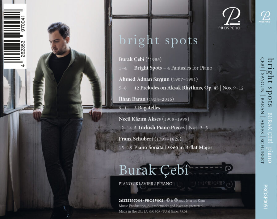 2022 yılında Prospero Classical etiketiyle yayınlanan ve ilk kez besteci olarak da yer aldığı ilk albümü “Bright Spots” mükemmel eleştiriler aldı. Kariyeriyle ilgili birçok yazı ve röportaj rbb Kultur, Radio Klassik Wien, Radio France, Borusan Radyo İstanbul, TRT Radyo ve Türk televizyonunda yayınlandı.